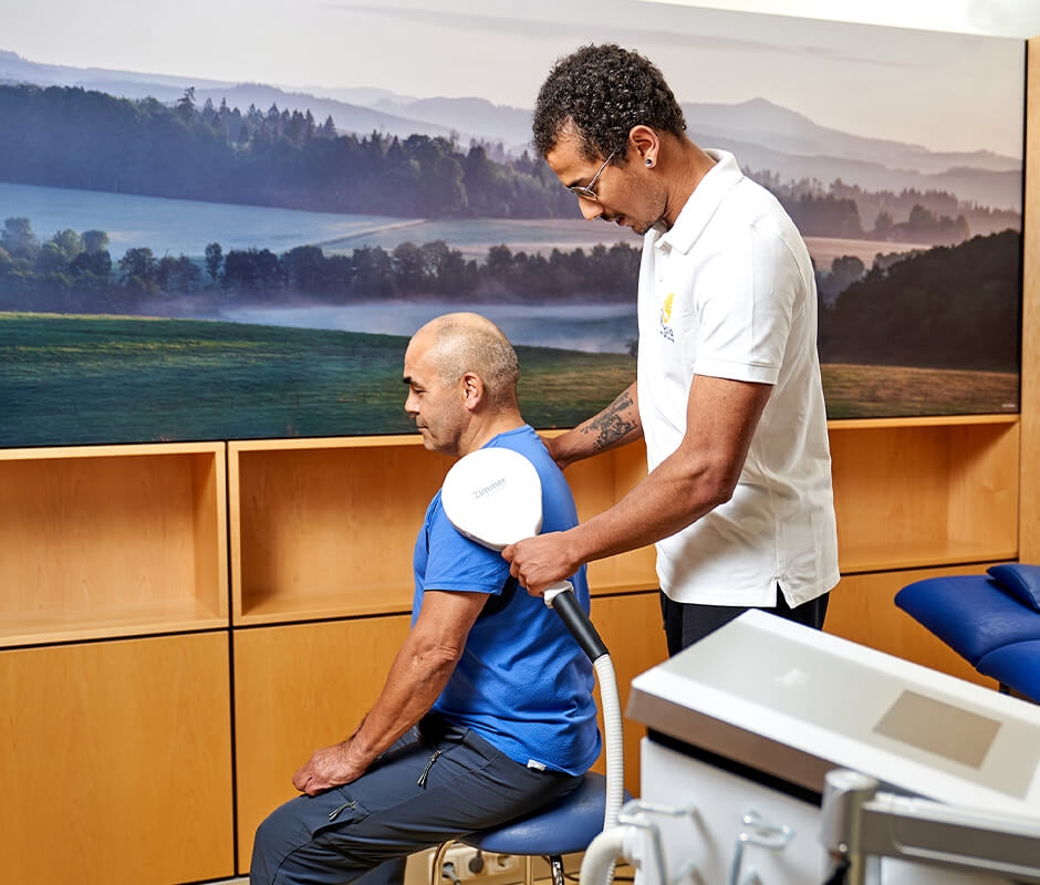 Die Lasertherapie ist eine Behandlung mit energiereichem Licht, die hohe Lichtmengen in das Gewebe einbringen. Dadurch wird die Heilung nachhaltig angeregt.